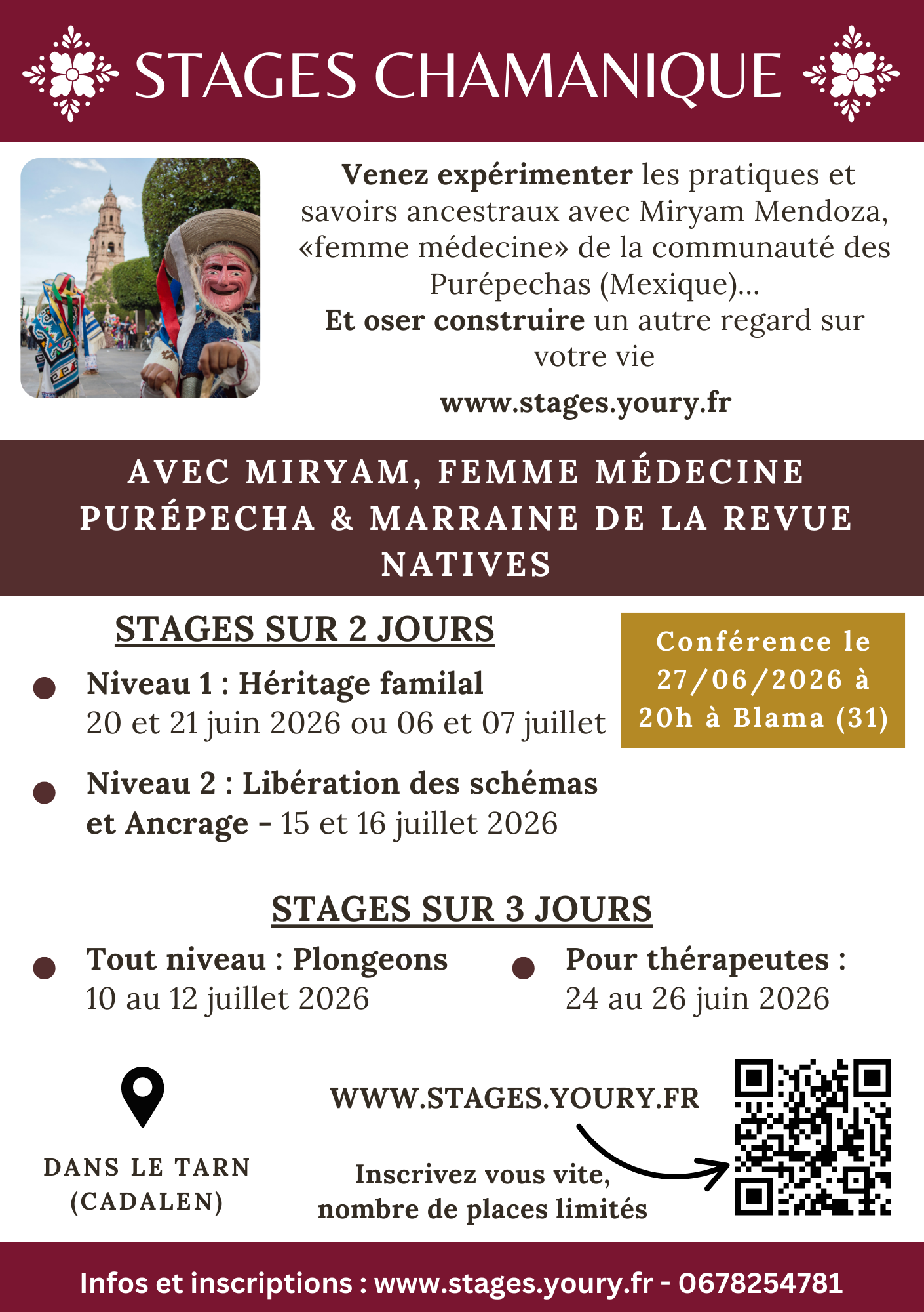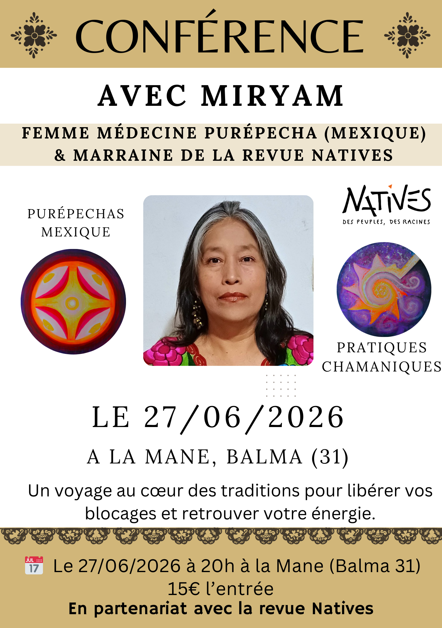 Miryam transmet le savoir ancestral de sa communauté Purépecha, une approche chamanique traditionnelle mexicaine qui agit sur l’énergie, les ancêtres et nos mémoires. Elle révèle les blocages et dégage le chemin pour avancer vers un nouvel équilibre de vie.